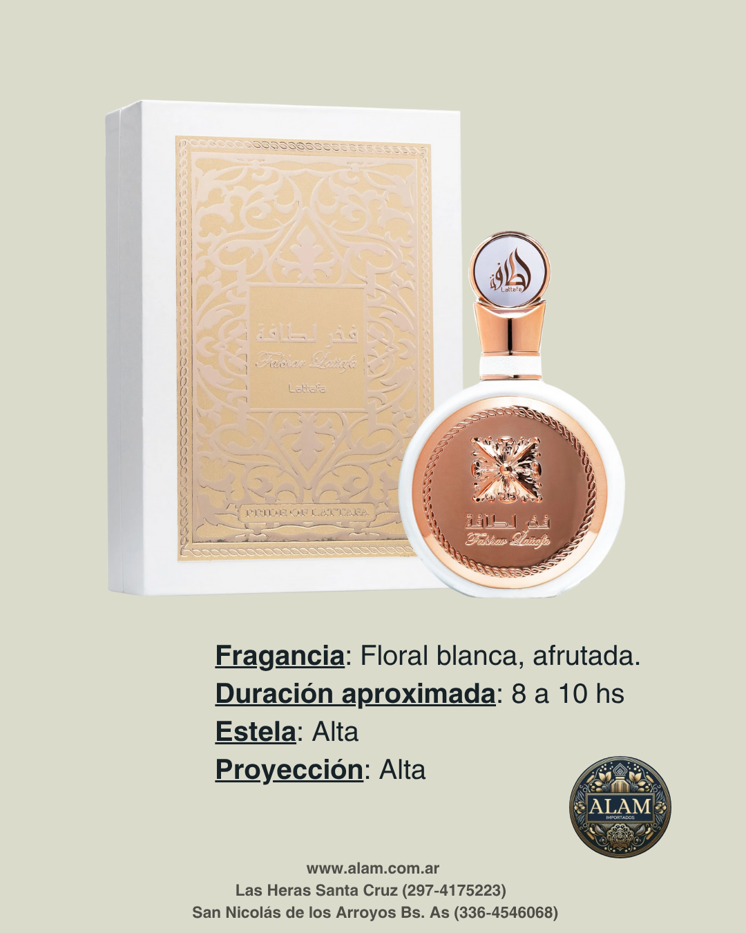 Fakhar Rose se abre con una mezcla fresca y afrutada de granada, azucena, frutas y aldehídos, seguida de un corazón floral intenso con nardos, jazmín, gardenia, ylang-ylang, madreselva, rosa y peonía. Su base cálida y sofisticada combina vainilla, almizcle blanco, ambroxan y sándalo, dejando una estela inolvidable. 🌺🌸