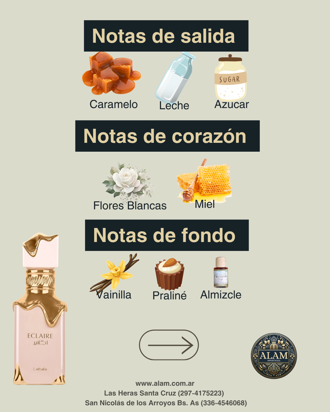 ✨ Notas de Salida: Un delicioso comienzo con toques de caramelo, leche y azúcar, que envuelven tus sentidos con una dulzura tentadora.