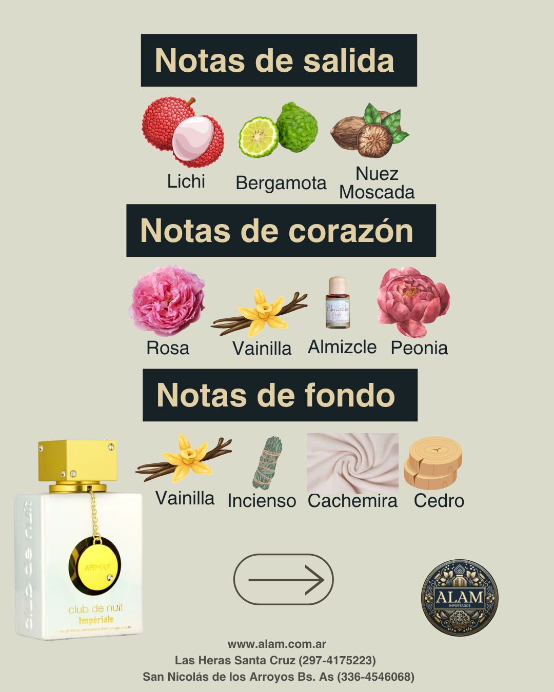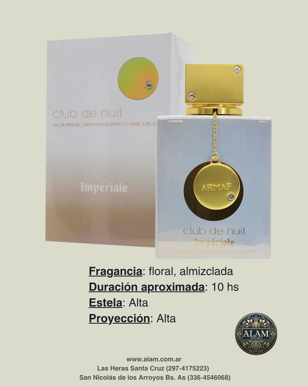 Club de Nuit White Imperiale es una fragancia femenina diseñada para mujeres que desean reflejar elegancia y sofisticación en cada detalle. Lanzada en 2022, esta creación pertenece a la familia olfativa Floral Oriental, destacando por su delicada combinación de notas frescas, florales y amaderadas.