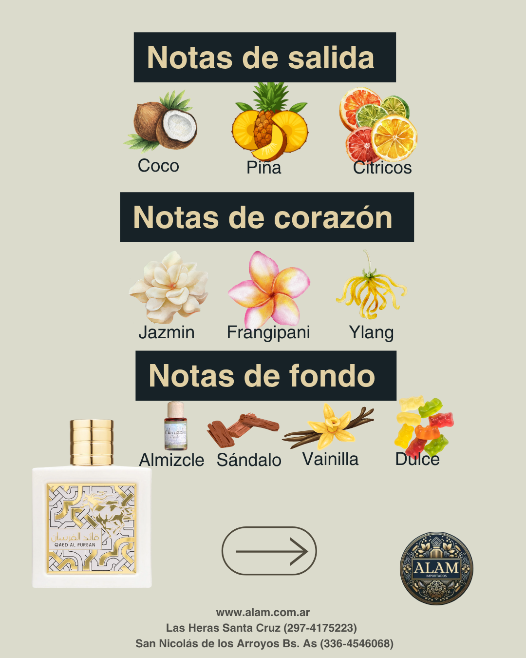 Qaed Al Fursan Unlimited de Lattafa Perfumes es una fragancia sofisticada de la familia olfativa Floral Frutal Gourmand, diseñada para hombres y mujeres.