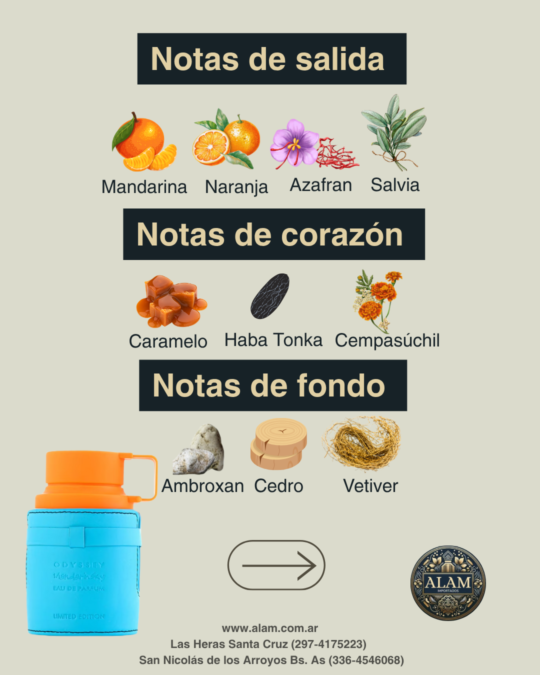 🌿 Salida: mandarina, naranja, azafrán y salvia.