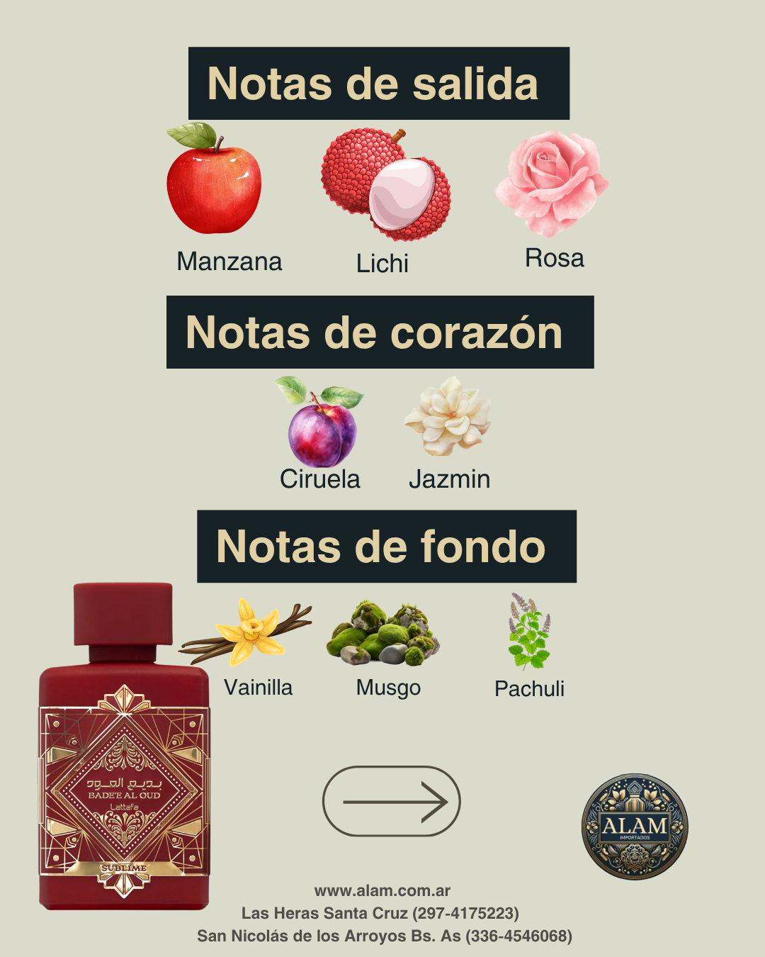 Con notas de salida frescas y afrutadas de manzana, lichi y rosa, un corazón vibrante de ciruela y jazmín, y un fondo seductor de musgo, vainilla y pachulí, Bade'e Al Oud Sublime es el toque perfecto de sofisticación para cualquier temporada. Atrévete a destacar con esta fragancia irresistible.