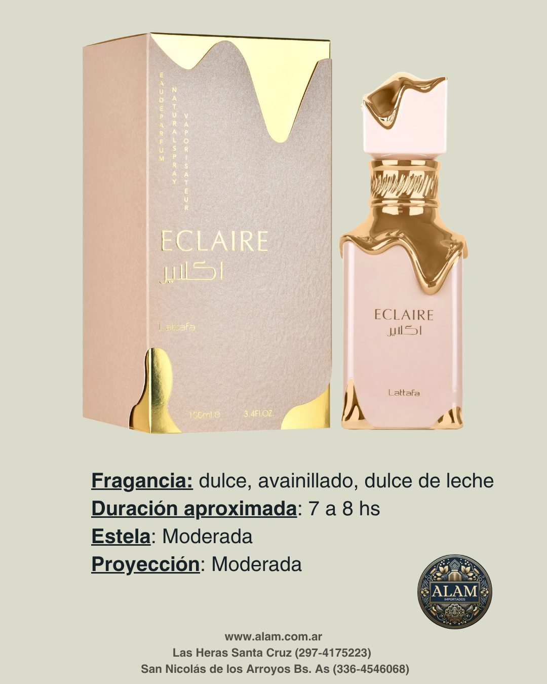 Descubre el encanto irresistible de Eclaire, una fragancia de la familia olfativa Floral Frutal Gourmand diseñada para mujeres que desean destacar con una esencia dulce y sofisticada. Lanzada en 2024, esta creación de Lattafa Perfumes combina lujo y delicadeza en cada nota.