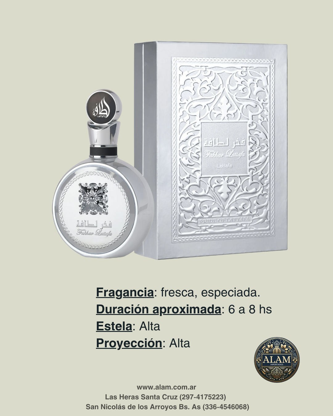 Fakhar Platin de Lattafa es una fragancia masculina moderna y cautivadora, ideal para hombres que buscan imponerse con elegancia y estilo.